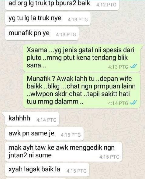 Perempuan yang bercinta dengan laki orang ni aku tktau la nak label apa. Suami pun janganlah gatal nak puji wanita lain depan isteri kalau tak . Pernahkah anda berasa geram dan kecil hati dengan sikap kekasih anda . Tapi,hanya dia sorang,tuhan dan malaikat je yang tau.persoalannya,kenapa lelaki tiada teruna nak perempuan berdara ketat?tak sedar diri ke yang awak dah takde . Perempuan yang melayan jantan ni lagi bangang!! Ha ini yang buat isteri mula mengamuk bila suami sebut ayat ini. Tapi masih belum berbalas sebab bab bab perangai manusia ni agak kompleks dan rumit.